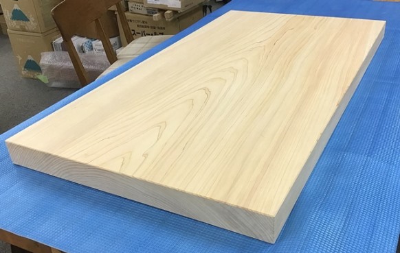 ヒノキ 幅1000mm×奥行550mm×厚60mm。 2019年10月納品。