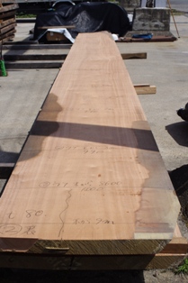 カウンターもテーブルも、長さ9000mmのこの板からすべて賄いました。加工・納品へ