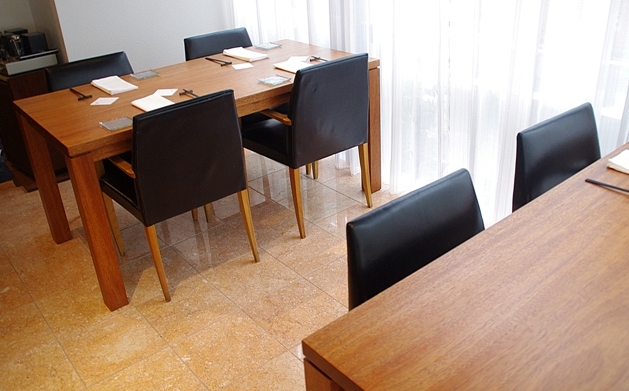 テーブルもお任せ頂きました。同じアフリカマホガニーで統一。