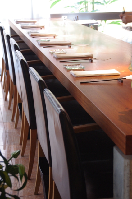 奥にも4人掛け、2人掛けの席があります。アフリカマホガニーで。