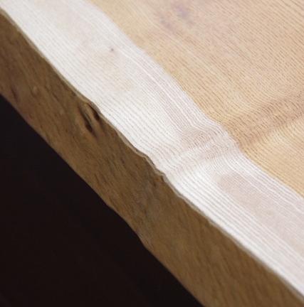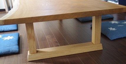 手彫りの面取り(角落とし)。さわり心地で癒されます。 耳付きテーブルのひそかな楽しみです。 このケヤキ板の共木あります(2011年9月現在ホームページ未掲載)