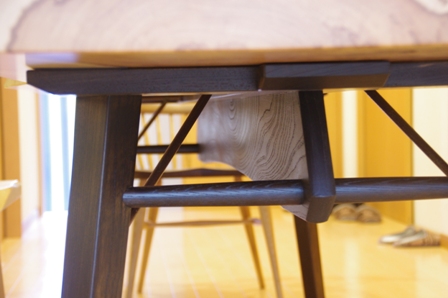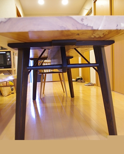 脚の骨格となる一枚板は緩やかな下腹の曲線と木目をお楽しみいただけます。