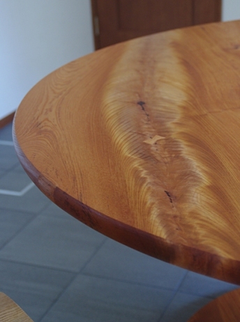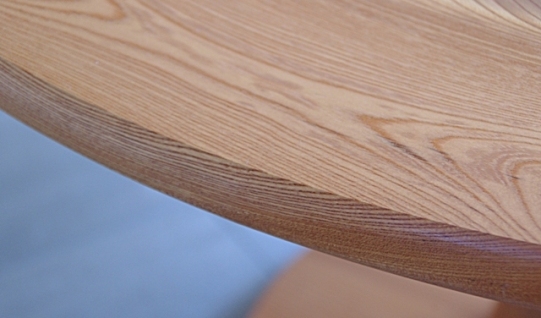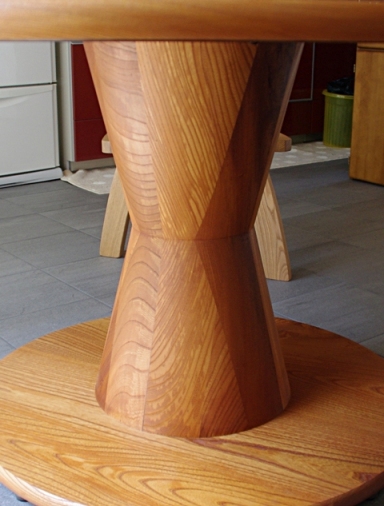 脚はケヤキ材を集成させたものをくびれをつけて円錐形に削りだしました。