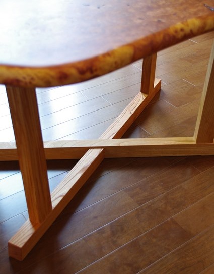 脚の形はお客様と一緒に考えに考え、クロス型に決定。ケヤキ材を使用。