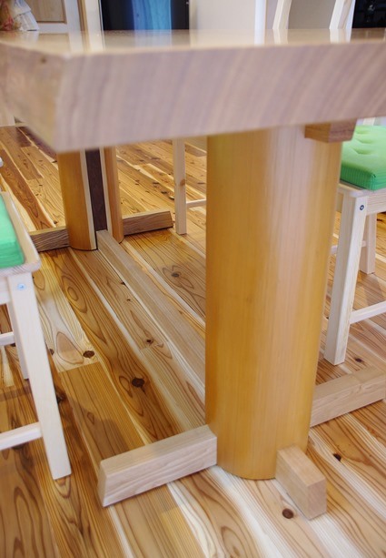 お施主様のお父様がお持ちだった磨き丸太を脚に加工しました。