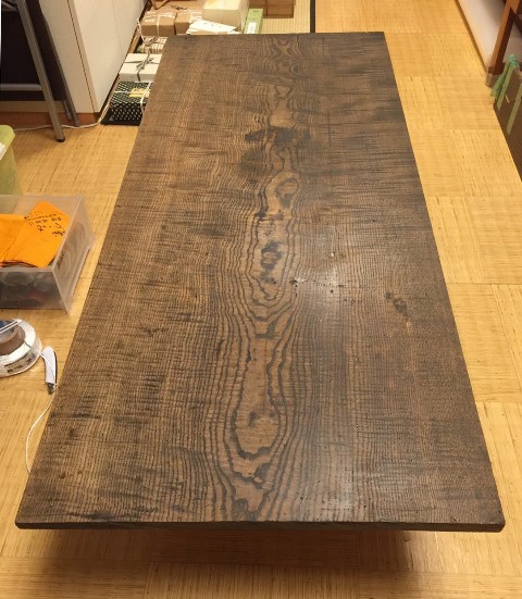 古材の杢木地板タモを再利用しました。風合いは極力そのままに。