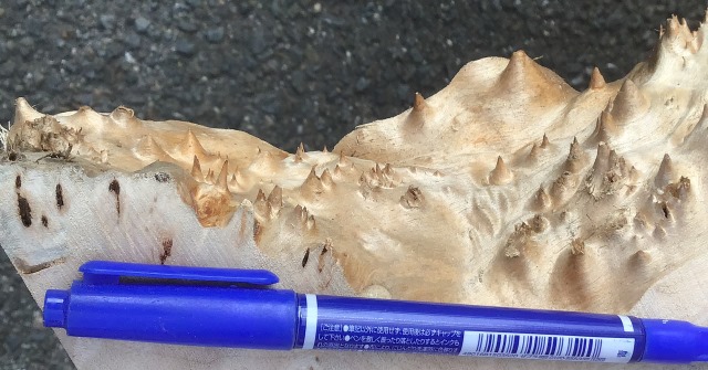 (写真上)特筆すべきは瘤のトゲトゲの処理方法。とがりすぎず丸めすぎず絶妙の加減です