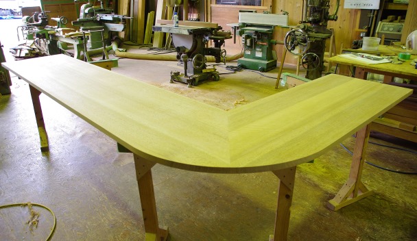 ニヤトー材(南洋桜)のカウンターを納品しました。幅3枚はぎで600mm。