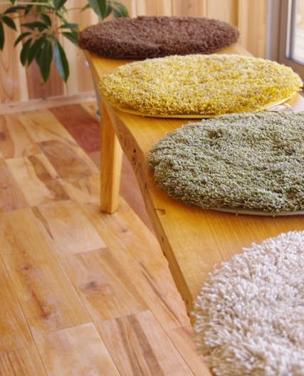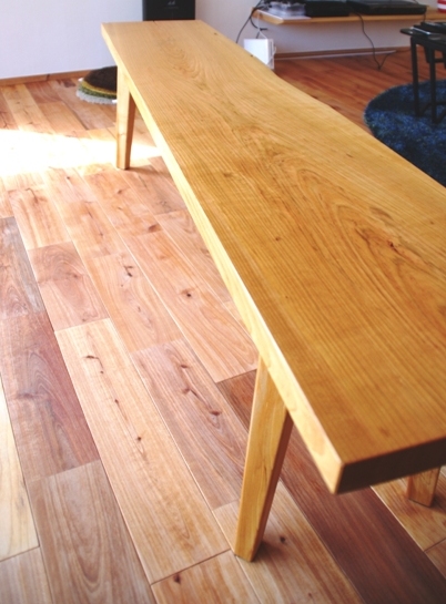 全耳付きのトチ材キッチンカウンター(写真なし)とのバランスを考え、ベンチでは極力すっきり耳をカットするデザインを好まれました。