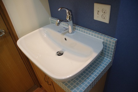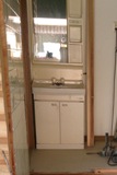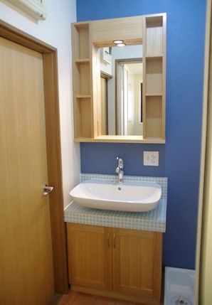 リフォーム前。いわゆる既製品の洗面台。もっと便利に、もっとおしゃれに。