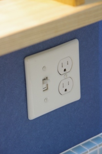 洗面ボールや蛇口、コンセントの差込にいたるまで遊び心で満たされています。