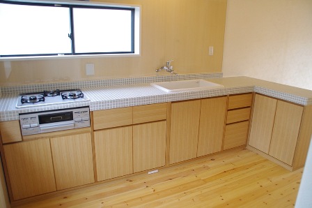 リビングとの心地よい境界を意識しキッチンはわずかにL字に配しました。