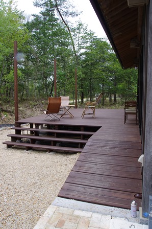リビングキッチンからもウッドデッキに出られます。 かなり広いです(広すぎます)。