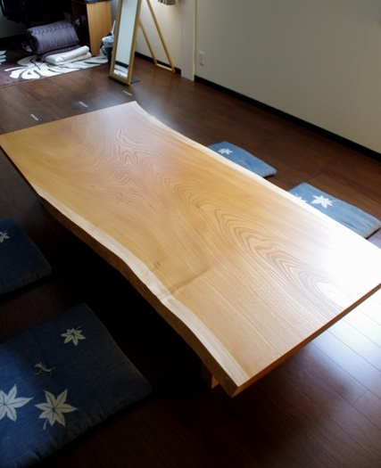 玄関を入ると足元にケヤキの一枚板がお目見え。地板として活躍していたものです。