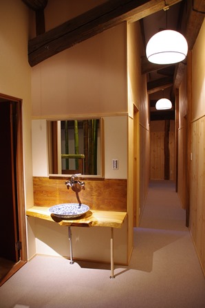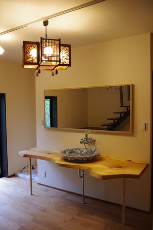 洗面トップは窯元のお施主様ならではの松の板。