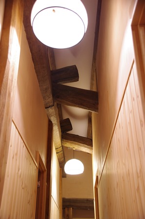 廊下の上を見上げるとここにも本物の梁。