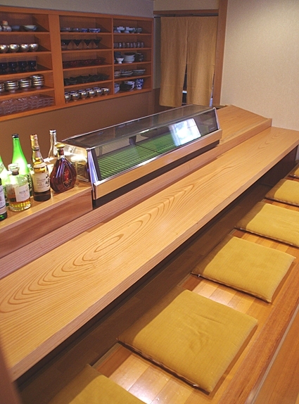 天井の古材ケヤキとも歩調を合わせ、遠近感で奥に吸い込まれるよう。