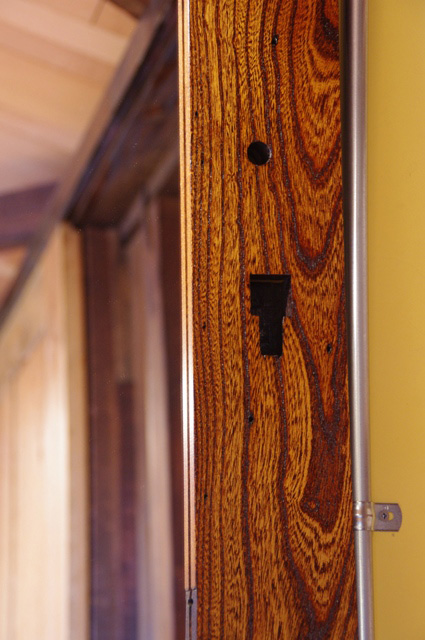 マホガニーの照明(丸萬テイスト)がじゃまでごめんなさい。 左右の枠の幅が違うデザイン。縦2070mm×幅1140mm 136,500円 (販売中・現品限り)