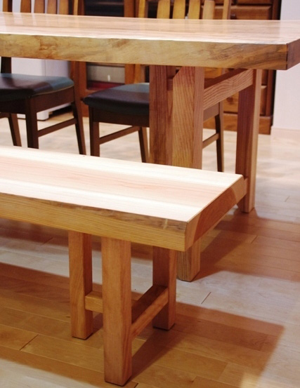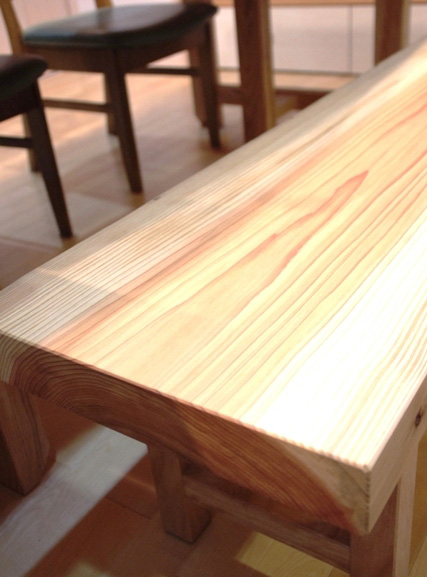 ベンチは脚元で差がつきます。 テーブルとおそろいで兼用脚風のデザイン。 このデザインは当社でテーブルをおつくりいただいた方のみ対象。