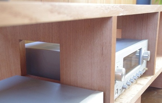 コードをすっきり束ねられるように背板と側板・帆立にコード溝穴を仕込みました。