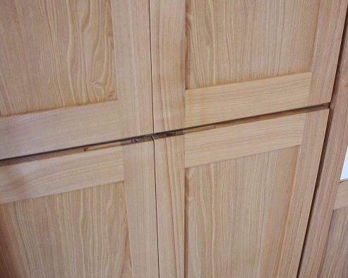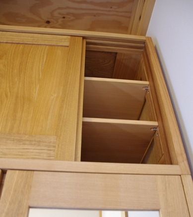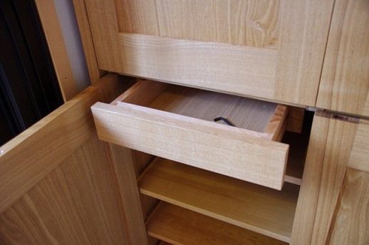下の扉もインセット。すべてはスッキリと引き締まって見せるための工夫です。 (棚板はスプルース材)