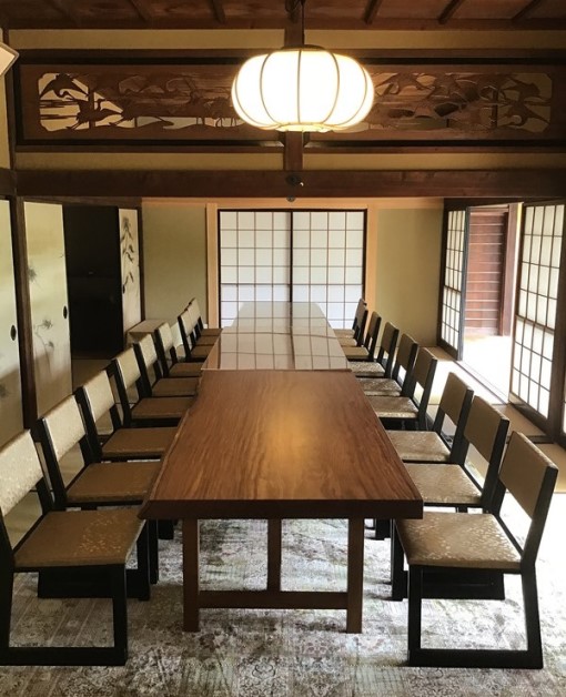 奥部屋のテーブル(一番手前)もお任せいただきました。2000mm×900mmアサメラ材。
