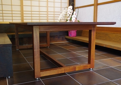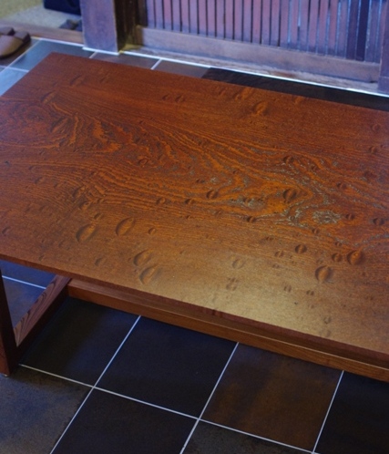 長2000mm×幅900mm×高600mm 2011/8納品 玄関入ってすぐの接客テーブル。古材の地板を再利用しました。