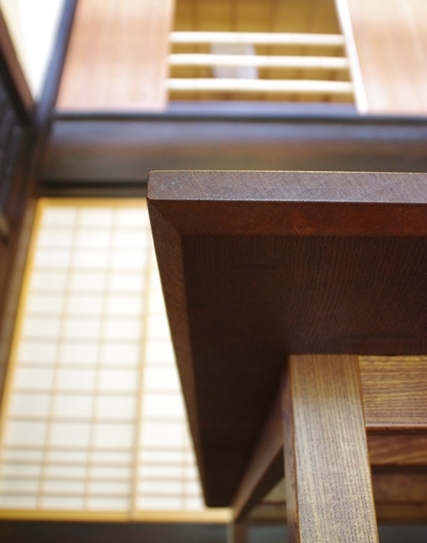 地板を天板にするも、ここは無垢板であることをアピールするためあえて框組みせず木口・ソバを大胆に見せる設計に。