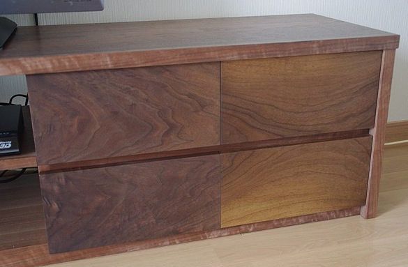 抽斗は左右で木目をつなげ、上下でブックマッチ(対照)で演出。