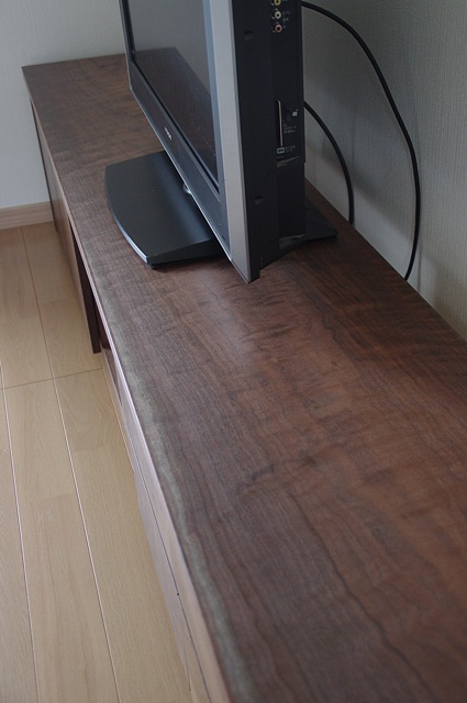天板は薄い一枚板を練りつけました。強度も質感も無垢材そのものです。