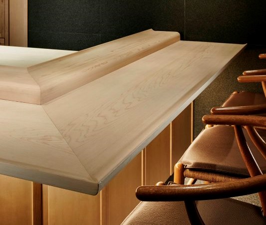 メイン部は客席に向かって反りあがったシャープなデザイン。つけ台も曲線です。