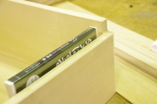抽斗(ひきだし)の前板もトチ材。