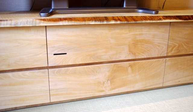 そして完成・納品へ。 お客様の数多くのご要望を反映できたと思います。 すべてお客様の熱意の結晶です。 ※このトチ材の共木あります。同サイズ程度の家具をお考えの方、ぜひご相談ください。