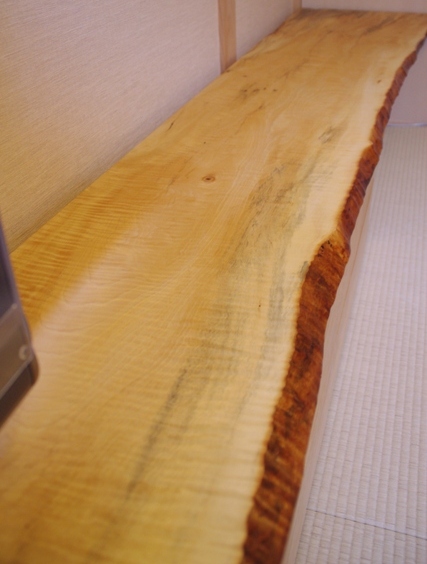天板は長3500mmのトチ一枚板。