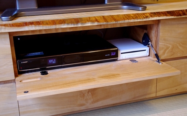 DVDのリモコンを機能させるためのもの。 スペースにはDVDとWii(ウィー)が並んで入るよう設計。