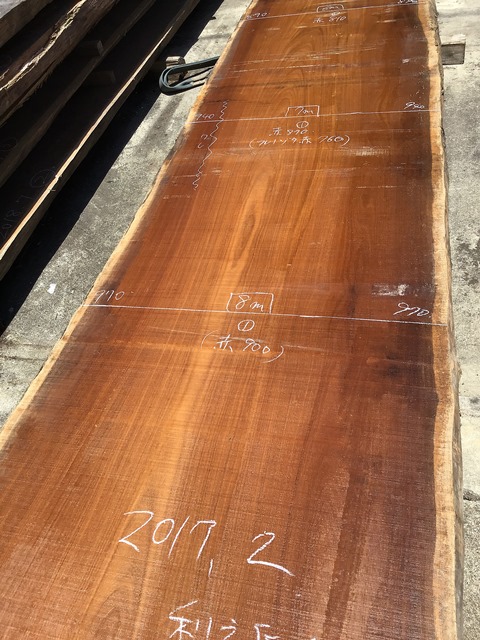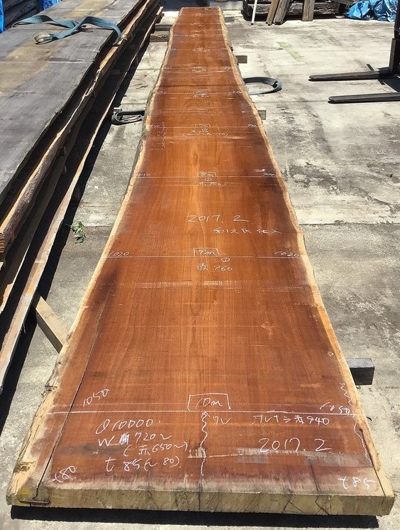 状 態:荒材 / 特 徴:傷が表に出ているところもありますが、気にならない出方なところが幸いの板。 / 幅:720mm ・元1050mm / 2017年2月製材