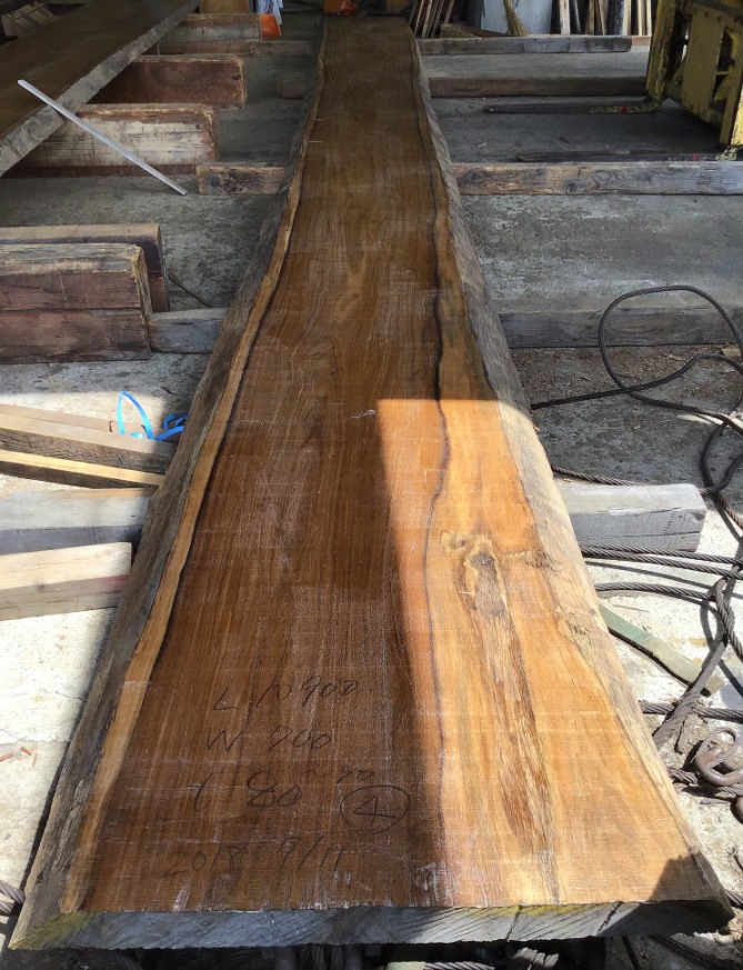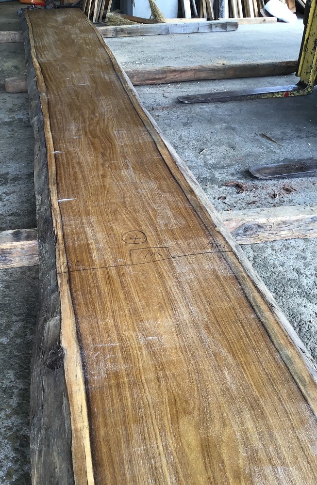 写真手前右に白太が面白く入っていますが仕上げる過程で多少落ちることになります。元の幅は約900mmです。
