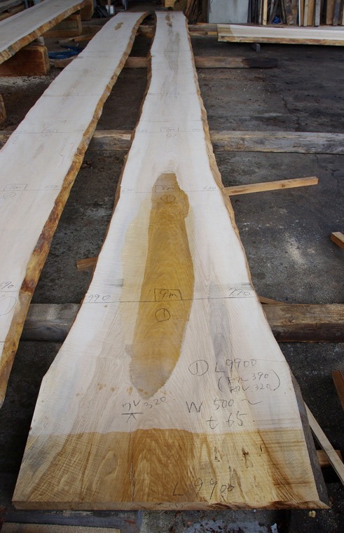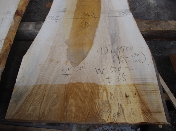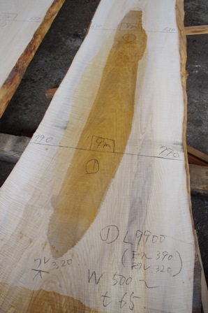 この板は特に白太が多くまっすぐで白木として使い勝手の良い板となっています。
