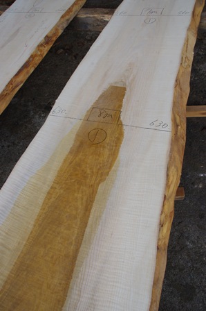 おなじ丸太の縮み杢を拡大しました。これが全体に入っています。