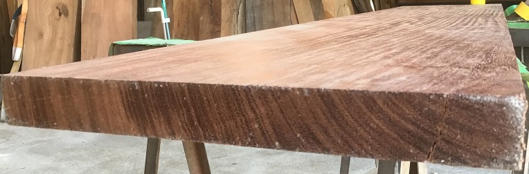 天板下には脚しかないので椅子の出し入れやひざ上の自由度が高いタイプ。板の反りへの対応は反り止めを入れることが多くなります。脚4本の太さは天板の厚みとバランスをとったサイズ(厚み60mmではおおよそ70mm×60mm)。