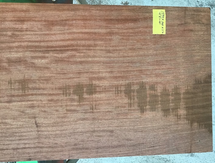 おもて面。目の細かい柾板です。上下真ん中下の点々が腐りです。その少し上に胴折れも見えます。