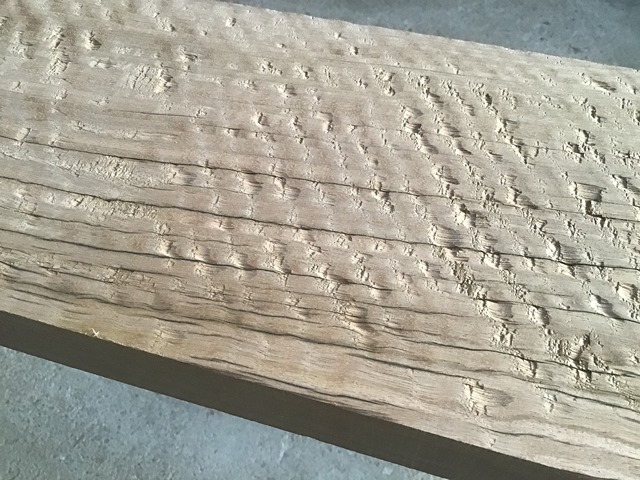 プレナーを当てて縮杢が飛んでしまいました。2mm程度えぐれている箇所があります。