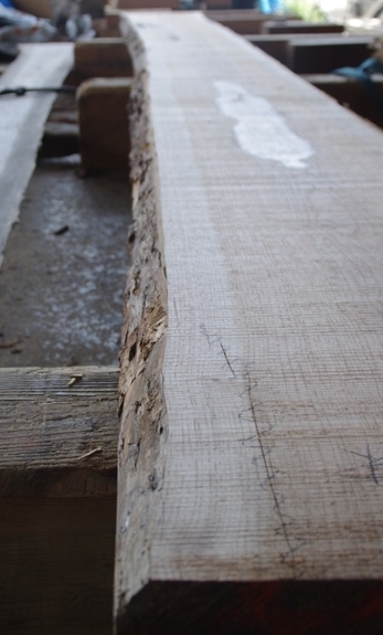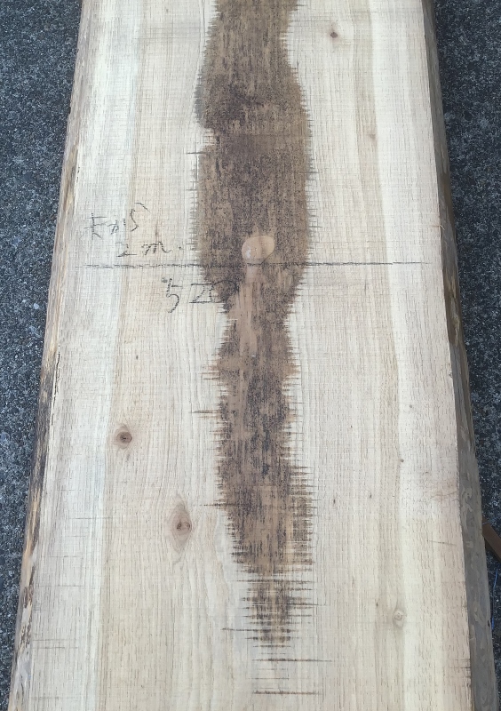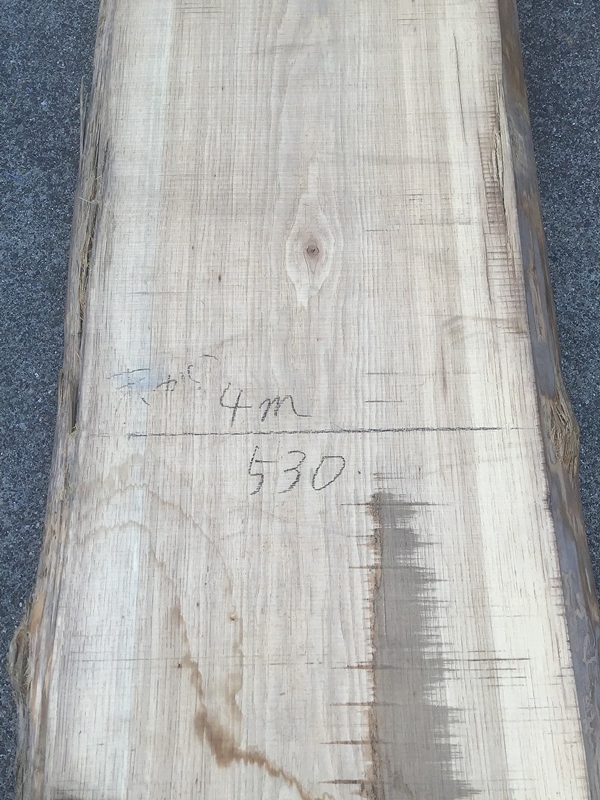 末拡大。割れが見られます。この板仕上がりイメージは長さ6000mm 幅400mm~450mm耳無し、ぐらいでしょうか。