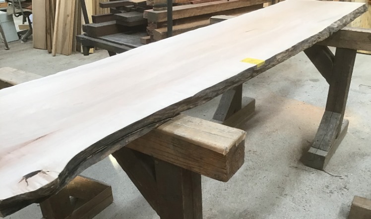 天板下には脚しかないので椅子の出し入れやひざ上の自由度が高いタイプ。板の反りへの対応は反り止めを入れることが多くなります。脚4本の太さは天板の厚みとバランスをとったサイズ(厚み60mmではおおよそ70mm×60mm)。