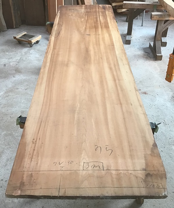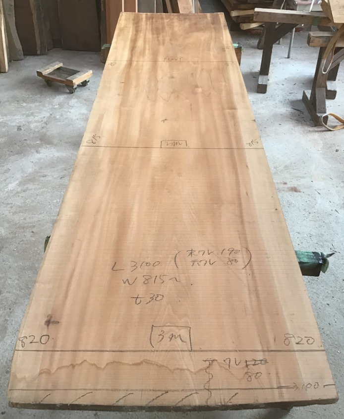 - 状 態:荒材 / 特 徴:幅広カツラ。このサイズでの傷の少なさは希少価値級。それなりに反りはあります。割れなしで長さ2800mm。