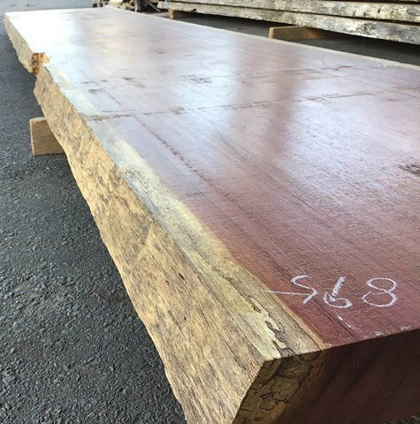 状 態:荒材 / 特 徴:紫色した珍しい木。厚みも相当。 耳ありなしどちらでも可。すっとした上品な木目と興味深い色が同居した一枚。オリジナルのバーやイタリアンなどに最適。 / 幅:末895mm・元970mm