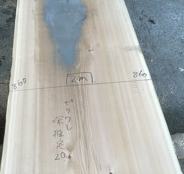 2000mm付近。ぴり割れが見られます。節もあれどわずか。