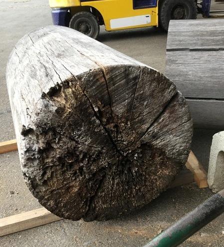 Bの木口(きれいな方)。割れが美しい。直径545mm。