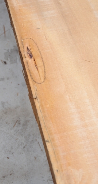 全体写真でも確認できるヤニツボ系の跡があります。節でなく特殊な趣があります。
