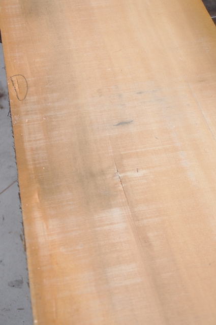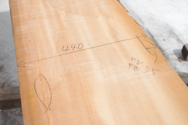 左がヤニツボ系傷、右は芯割れにより荒れていますが、幅400mm程度に落とせば取り除けそうです。
